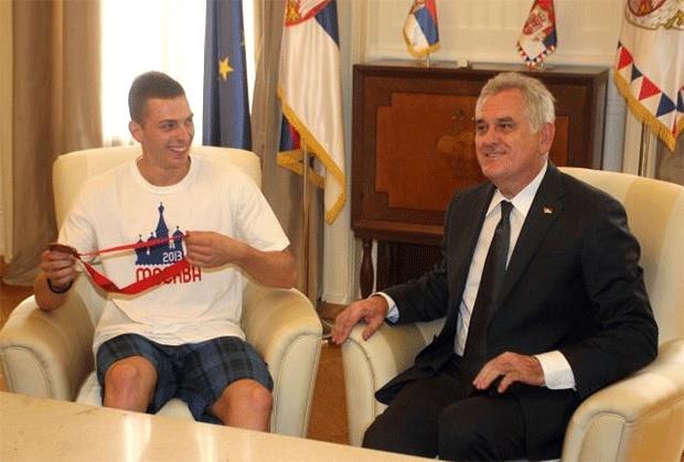 BEOGRAD - Predsednik Srbije Tomislav Nikolić primio je u Beogradu posetu atletičara Emira Bekrića, zajedno sa ličnim trenerom Mirjanom Stojanović i delegacijom koju je predvodio predsednik Atletskog saveza Srbije Veselin Jevrosimović.