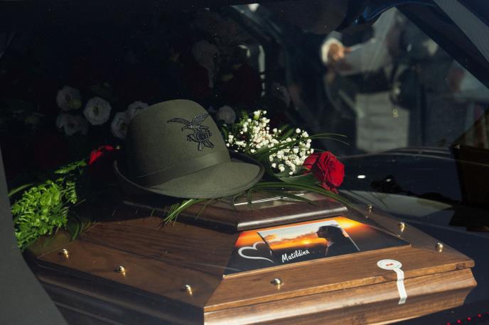 Skija koju je donela njena mlađa sestra Lukrecija, a na kojoj je ime Matilde Lorenci, položena je na oltar i ostala je uz kovčeg 19-godišnjakinje. Na kovčeg je postavljena i italijanska zastava.