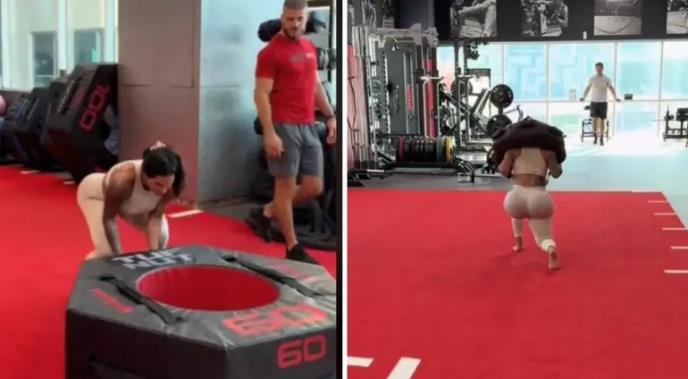 Originalan snimak kod njega je na profilu pregledan više od 600.000 puta, a na njemu se vidi bujna i tetovirana dama kako naporno vežba...