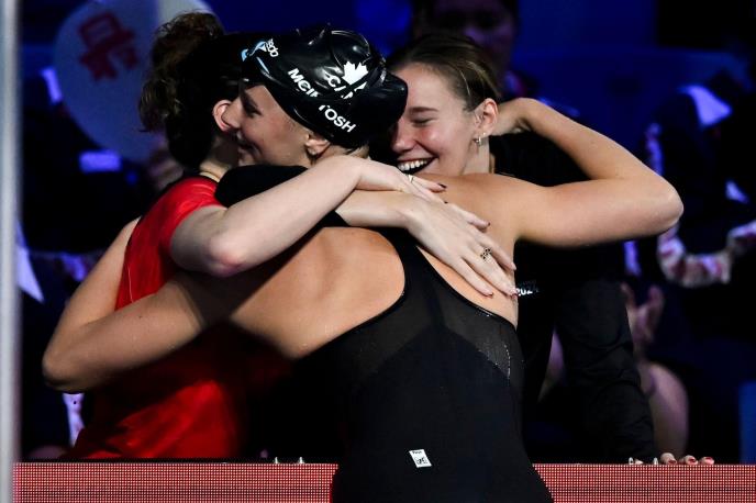 Kanadska plivačicaSamer Mekintoš osvojila je danas zlatnu medalju i postavila novi svetski rekord u trci na 400 metara mešovito na Svetskom prvenstvu u malim bazenima u Budimpešti.