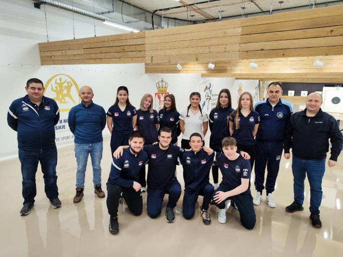 Članovi kadetske i mlađejuniorske nacionalne selekcije su trenirali u streljani Multifunkcionalne dvorane Zavoda za sport i medicinu sporta u Košutnjaku.