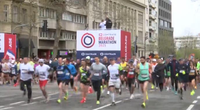Nakon intoniranja himne "Bože pravde" trka na 42,195 kilometara počela je ispred crkve Svetog Marka, a cilj je tradicionalno na Terazijama kod hotela Moskva.