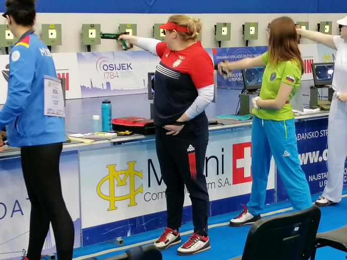 Zorana Arunović i juniorka Nađa Martinović su učestvovale u kvalifikacijama vazdušnim pištoljem. Arunovićeva je zauzela 55. poziciju sa 568 krugova. Martinovićeva je pogodila deset manje za 95. mesto.
