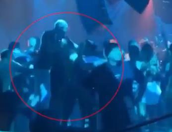 Napadnuti mladić pada unazad, direktno u masu prisutnih, dok obezbeđenje i ostali gosti pokušavaju da shvate šta se zapravo dogodilo.