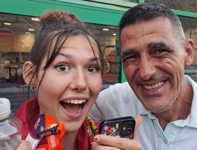 "Čudesna, magična, 'namerno drugačija', šampionka Evrope!!! Voli te ćalac", napisao je ponosni tata uz zajedničku fotografiju sa ćerkom.