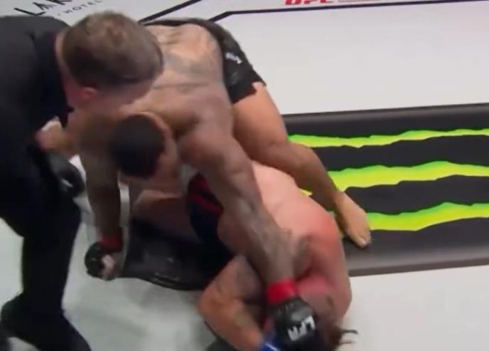 Samo 98 sekundi bilo je dovoljno sjajnom Amerikancu da zabeleži prvi trijumf u svojoj MMA karijeri. Srušio je rivala na pod i naneo mu veliki broj snažnih udaraca u glavu, pa je sudija bio prinuđen da prekine borbu.