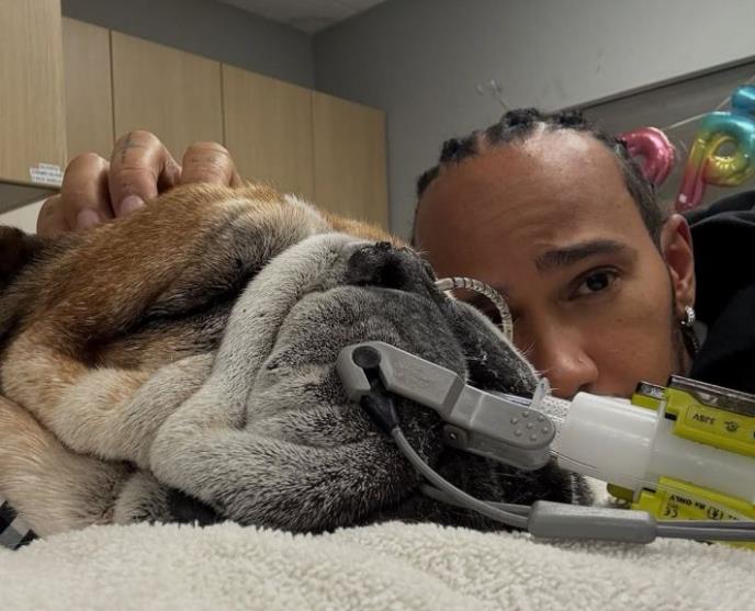 Hamilton je na Instagramu objavio da je posle višednevnog lečenja njegov buldog Rosko uginuo u nedelju uveče.