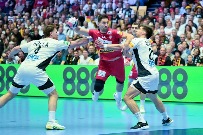 Miro Šlurof je izjednačio - 23:23. Srbiji je prethodno oduzeta lopta u napadu, a bek Nemaca je praktično bez bloka pogodio mrežu.