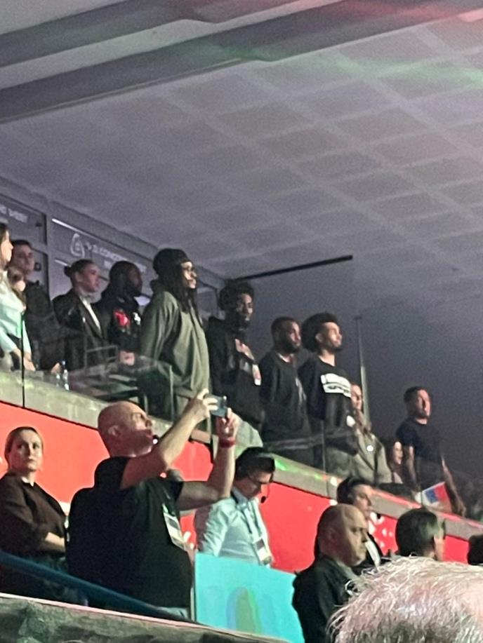 U Areni vlada sjajna atmosfera, a u jednom od boksova našla se delegacija crveno-belih. Pored predsednika kluba, Željka Drčelića, prisutni su bili i košarkaši Zvezde, Džordan Nvora, Jago Dos Santos, Semi Odželej, Čima Moneke i Kodi Miler Mekintajer.
