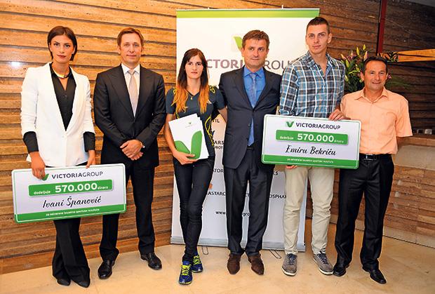Srpski atletičari, bronzani sa Svetskog prvenstva u Moskvi - Ivana Španović i Emir Bekrić dobili su nagrade u iznosu od po 570.000 dinara od „Viktorija grupe“, a ova kompanija potpisala je s Atletskim savezom i ugovor o stipendiranju Amele Terzić do Olimpijskih igara u Riju.