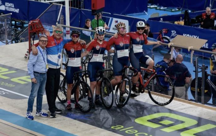 Ženska reprezentacija Srbije u biciklizmu zauzela je deseto mesto na Prvenstvu Evrope na pisti, koje se vozi u Konji u Turskoj, u disciplini "team sprint", a uspeh je ponovila, takođe osvajajući deseto mesto i u disciplini "Ekipno 4.000 m" (Women’s Team Pursuit).