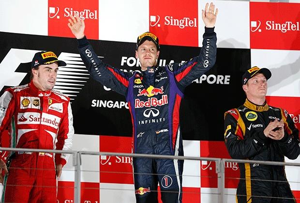 Fetel je do kraja trke zadržao ubedljivu prednost, a u poslednjem krugu pokvarilo se vozilo Marka Vebera, kome je trka u Singapuru bila poslednja u karijeri.