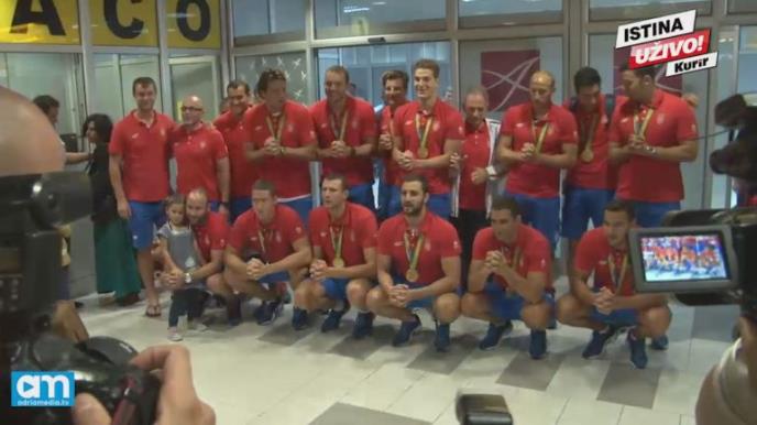 Nekoliko stotina navijača je na Aerodromu Nikola Tesla pozdravilo mušku i žensku košarkašku reprezentaciju, ženski odbojkaški tim i vaterpoliste Srbije.