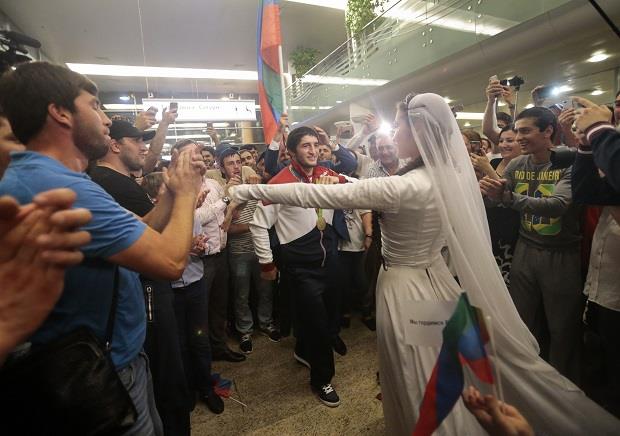 Ruski olimpijci koji su se poslednji vratili iz Rio de Žaneira u Moskvu, među kojima su mnogi osvojili zlatne medalje, dočekani su kao heroiji na moskovskom aerodromu, prenela je večeras agencija Frans pres.