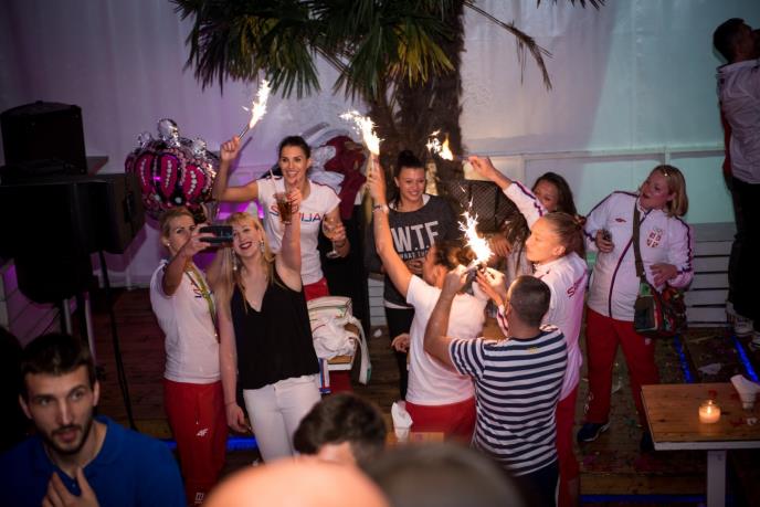 Posle dočeka ispred Doma Narodne škupštine, srpski olimpijci slavlje su nastavili na prestoničkom splavu "Lasta".