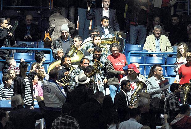 Dolazak Noletov oca Srđana u Arenu juče je bilo teško ne primetiti s obzirom na to da su ga trubači uz muziku dopratili do ulaza, a nakon toga se preselili na tribune, odakle su za vreme pauza u poenima podizali atmosferu do usijanja.