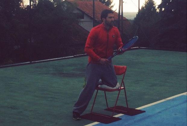 Srpski teniser počeo je da trenira, ali samo sa jednom nogom. On je na društvenim mrežama objavio snimak na kom udara lopticu dok stoji na jednoj nozi, dok je kolenom druge naslonjen na stolicu.