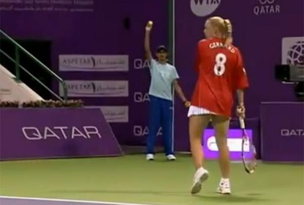 Međutim, posle meča Voznijacki nije ni reč rekla o tenisu, već je pričala o Stivenu Džerardu i Liverpulu, za koji navija.