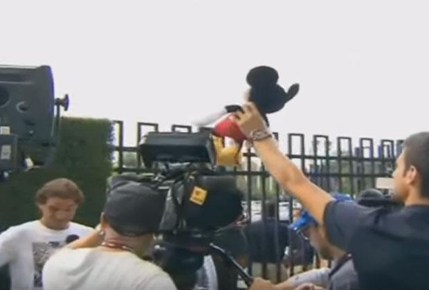 Prvi reket sveta se našalio i sa Rafaelom Nadalom dok je Španac davao izjave novinarima. Srbin je pokušao da zbuni Španca tako što je ispred njega mahao igračkom Mikija Mausa. Nadal se u jednom trenutku zbunio, a onda se nasmejao na ovu Novakovu šalu.