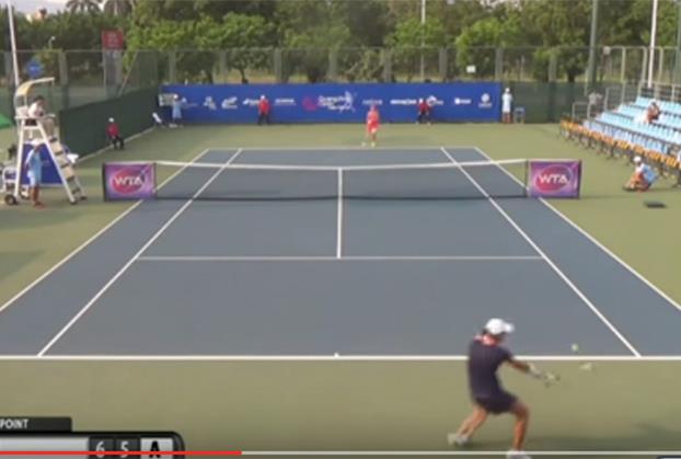 GVANGDŽOU - Rumunska teniserka, Monika Nikulesku, osvojila je neverovatan poen na meču protiv Šveđanke Rebeke Peterson na turniru u Gvangdžou u Kini.