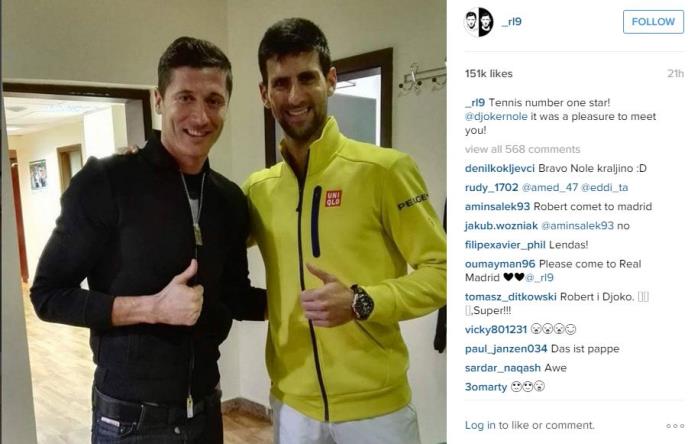Zvezda Bajern Minhena, Robert Levandovski, objavio je na svom Instagram profilu fotografiju sa najboljim teniserom sveta - Novakom Đokovićem
