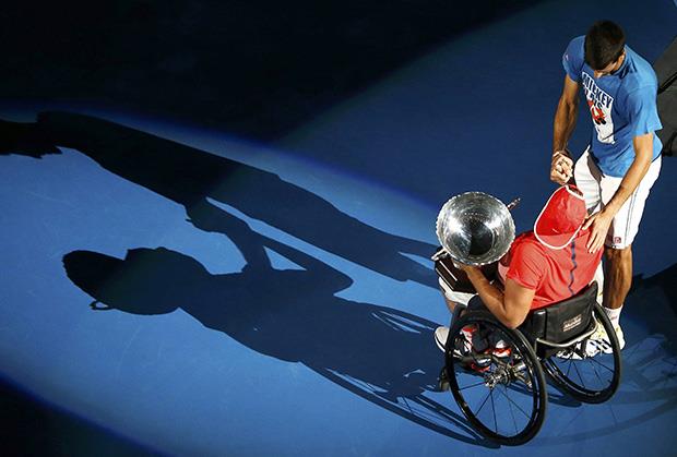 Srpski teniser napravio je neobičan potez pošto je prekinuo trening na "Rod Lejver areni", gde se pripremao za veliko finale protiv Endija Mareja (nedelja 9.30), i otišao da čestita Dilanu Alkotu pobedu u konkurenciji tenisera u invalidskim kolicima.