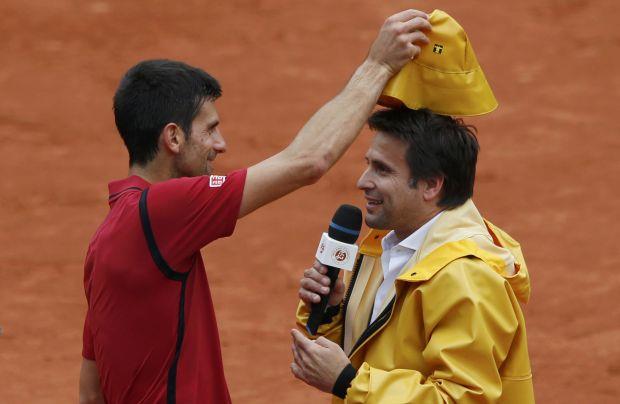 Santoro je na sebi imao žutu kabanicu i šešir. Đoković je pre davanja intervjua skinuo Fabrisu šešir i stavio ga na svoju glavu.