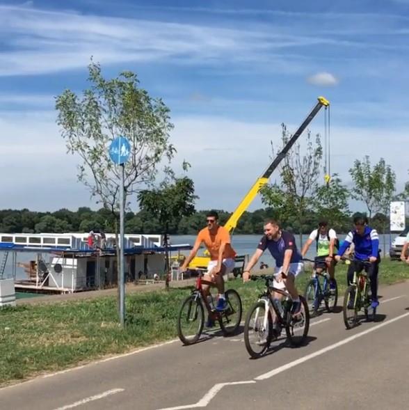 Najbolji svetski tenisrer Novak Đokovićna kratko je došao u Beograd, a danas se biciklom provozao na keju pored Sporstkog centra 25. maj na Dorćolu.