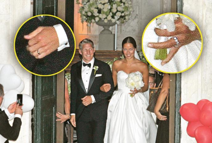 Srpska teniserka Ana Ivanović i nemački fudbaler Bastijan Švajnštajger po izlasku iz crkve "Svete Milosti" u Veneciji pokazali su na rukama skupocene brume.