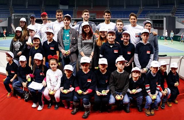 Neposredno posle završetka treninga, Novak, Nenad, Dušan i Filip su se sreli sa grupom mališana koji su ih čekali pored terena. Reč je o deci oboleloj od raka, koji su želeli da upoznaju svoje sportske idole.