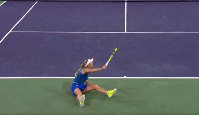 U prvom gemu drugog seta Voznjacki je imala brejk loptu kada joj se dogodila nezgoda - okliznula se i pala na zadnjicu!