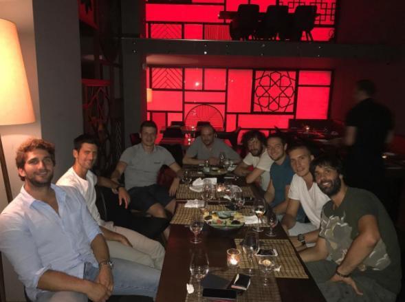 Đoković je uživao u društvu Bogdana Bogdanovića, Miloša Teodosića, Marka Pantelića i još nekolicine prijatelja.