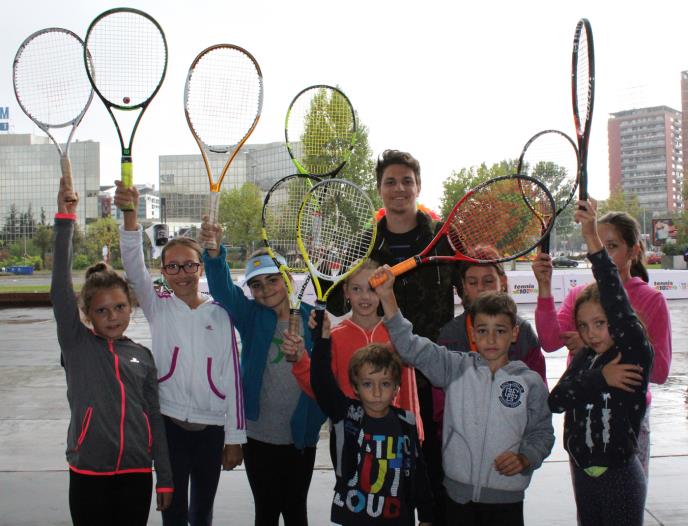 Prvi junior sveta Miomir Kecmanović uveličao javni čas tenisa - "Igraj i oseti pobedu" u Beogradu.