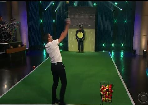 Novak je učestvovao u igrici gde je trebalo da servira i skini flašicu sa glave voditelja ove emisije, ali ga je Džejms zamolio da to uradi sa levom rukom jer mu je desna povređena.