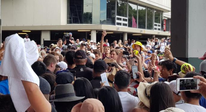 Neposredno po završetku egzibicionog meča protiv Dominika Tima na "Kujong klasiku" veliki broj navijača svih uzrasta je opkolio Đokovića tražeći autogram ili selfi.