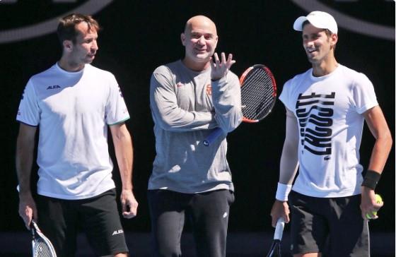 Agasi je uprkos povredi stigao u Melburn kako bi bio uz Novaka na prvom Gren slemu u sezoni. Tako je ekipa u punom sastavu odradila trening.