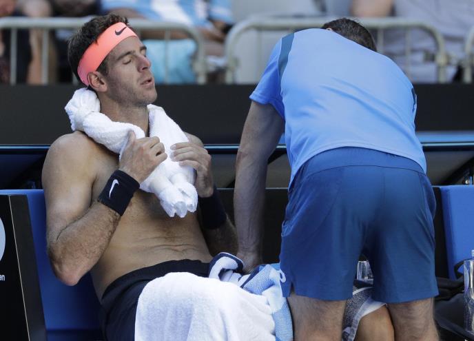 Del Potro je po najvećoj vrućini u Mleburnu, u pojedinim trenucima temperatura podloge bila je veća od 60 stepeni Celzijusa, uspeo da savlada Kačanova u četiri seta, 6:4, 7:6 (4), 6:7 (0) i 6:4 i zakaže duel s Čehom Tomašom Berdihom koji je sa 3:1 bio bolji od Španca Giljerma Garsije-Lopesa.