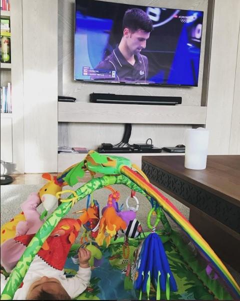 Jelena Đoković postavila je na društvene mreže sliku na kojoj se vidi kako malena Tara prati tatin meč sa Špancem Albertom Ramosom Vinjolasom.