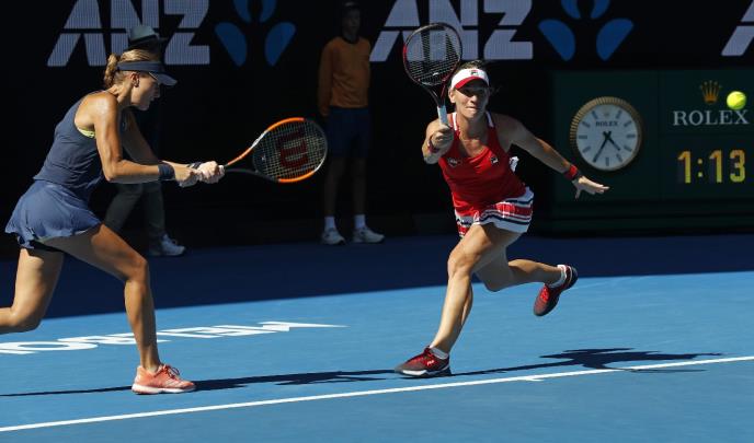 Srpska teniserka Nina Stojanović i njena partnerka u dublu Švajcarkinja Viktorija Golubić nisu danas uspele da se plasiraju u četvrtfinale Otvorenog prvenstva Australije u Melburnu, pošto su izgubile od madjarsko-francuskog para Timee Baboš i Kristine Mladenović posle dva seta, 5:7, 2:6.