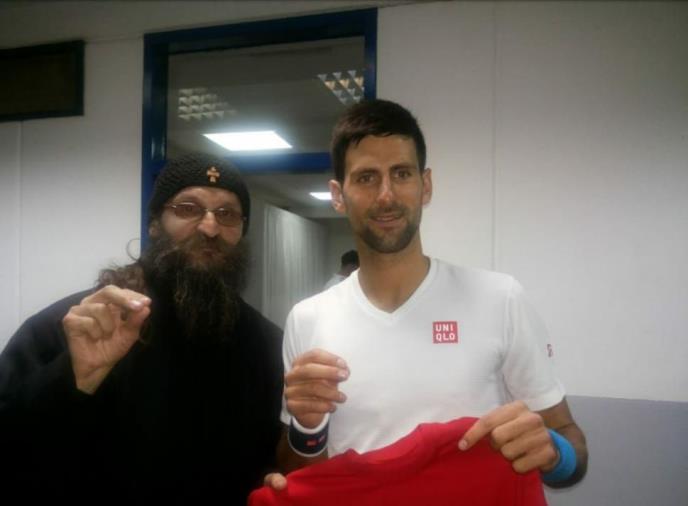 Otac Gerasim iz Đurđevih stupova posetio je tenisku reprezentaciju Srbije pred meč sa Kazahstanom u hali "Pionir" i tom prilikom im uz blagoslov darovao ikone i krstiće, poželevši im zdravlje i uspeh u karijeri.