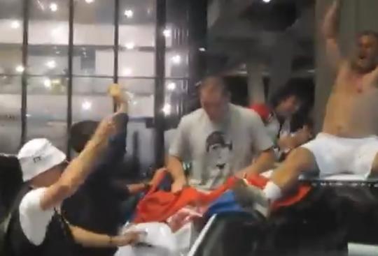 Marjan Vajda se popeo na auta i uz podršku Novaka i ostatka tima krenuo da skače i da se valja, skinuo je majicu i počeo da je vrti...