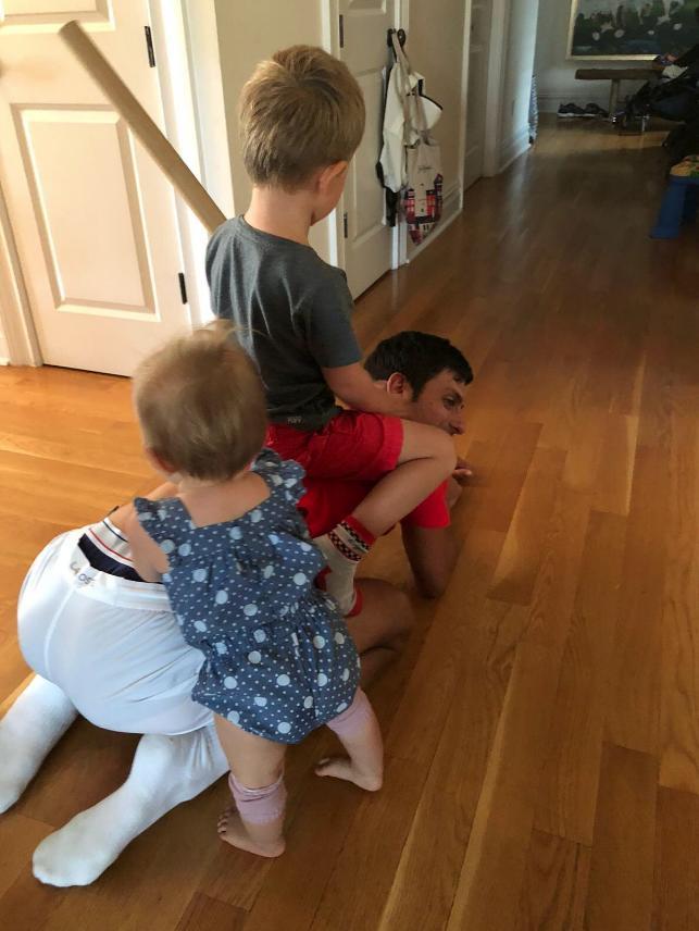 Tako je tata Nole odlučio da ispuni sve želje mališanima, te im je dozvolio da mu se 'popnu na glavu'.