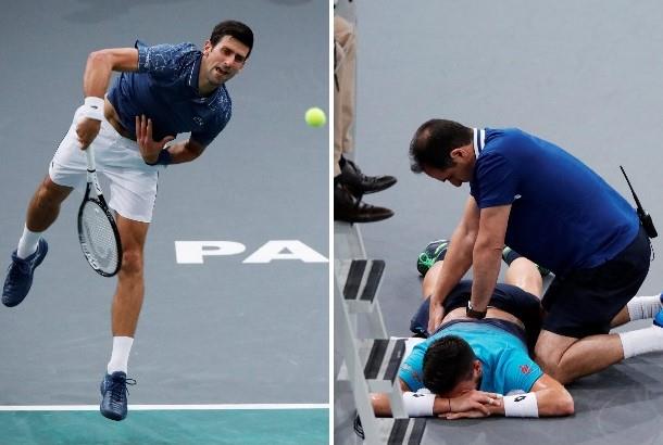 Džumhur se u finišu prvog seta požalio na bol u leđima, odmah je zatražio medicinski tajm-aut... Nakon ukazane lekarske pomoći nastavio je meč. Međutim, odmah nakon brejka Đokovića u trećem gemu drugog seta Džumhur je odustao.