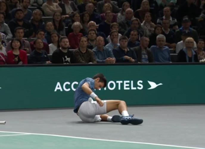 Novak je uganuo zglob, ispao mu je reket, svi su zaćutali na trenutak, ali srećom ništa nije bilo ozbiljno.