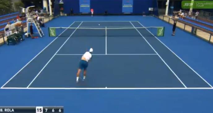Bizaran detalj na jednom teniskom meču videli smo na čelendžeru u Džuhaiju, kada je Slovenac Blaž Rola pred kraj trećeg seta odservirao as kakav se retko viđa.