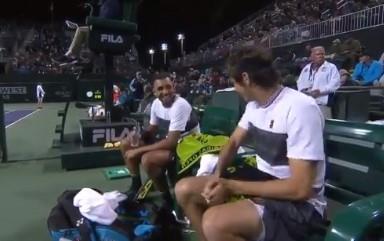 Nik Kirojs i Tejlor Fric pobedili su Stiva Džonsona i Dominika Tima 7:5, 6:1 u prvom kolu dublova, a meč je obeležila jedna zaniljiva scena koja se dogodila na pauzi između gemova u finišu prvog seta.