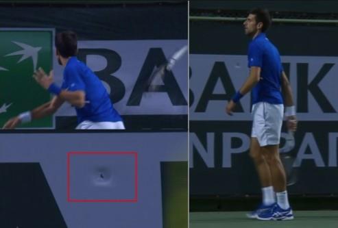 Novak je bio jako frustriran zbog poraza od Filipa Kolšrajbera. Nakon jednog izgubljenog poena sredinom drugog seta iskalio je sav bes koji se nakupio na reketu i ogradi koja se nalazi iza osnovne linije.