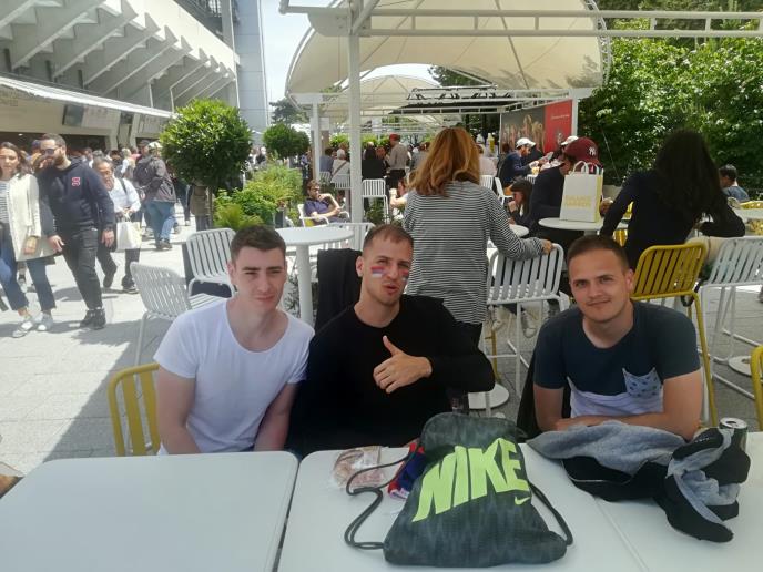 - Svi smo ovde sa jednim ciljem da damo podršku našim tensierima da sto dalje doguraju na Rolan Garosu. Gledali smo Kecmanovića i Krajinovića, i stvarno smo ih zdušno bodrili. Na našu žalost nećemo moći da pratimo Novaka, jer on igra na glavnom terenu. Ipak, bićemo srcem uz njega - kazao je jedan od momaka.