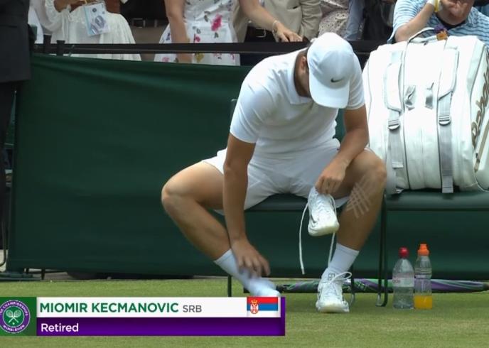 Mladi srpski teniser Miomir Kecmanović zbog povrede predao je meč drugog kola Vimbldona Benoi Peru, pri vođstvu Francuza 7:6 (7:5), 6:4.