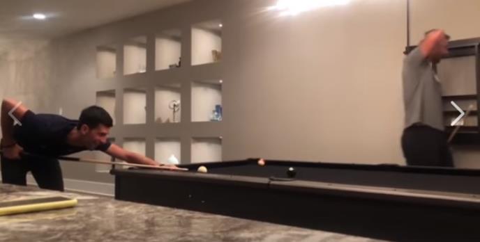 Njih dvojica su igrala bilijar, a bivši hrvatski teniser se vidno iznervirao, jer je Novak bio uspešniji.